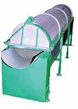 Pea Grader consist of several cloverleaf pattern drums fitted with different perforations. The peas dropping through the perforates are collected under the respective drum, while the larger leave through the end of the drum.
